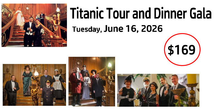 Exhibition features more than 300 artifacts and historical items as well as fullscale room recreation. Join Captain Smith, Margaret “Molly” Brown, and